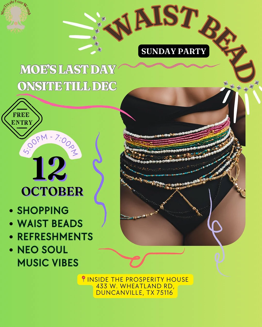 #WaistBeadParty #MoeTivateYourWomb #ChasPolelificent #DJBLoveIt #DesotoTX #SelfLove #NewYearNewBeads