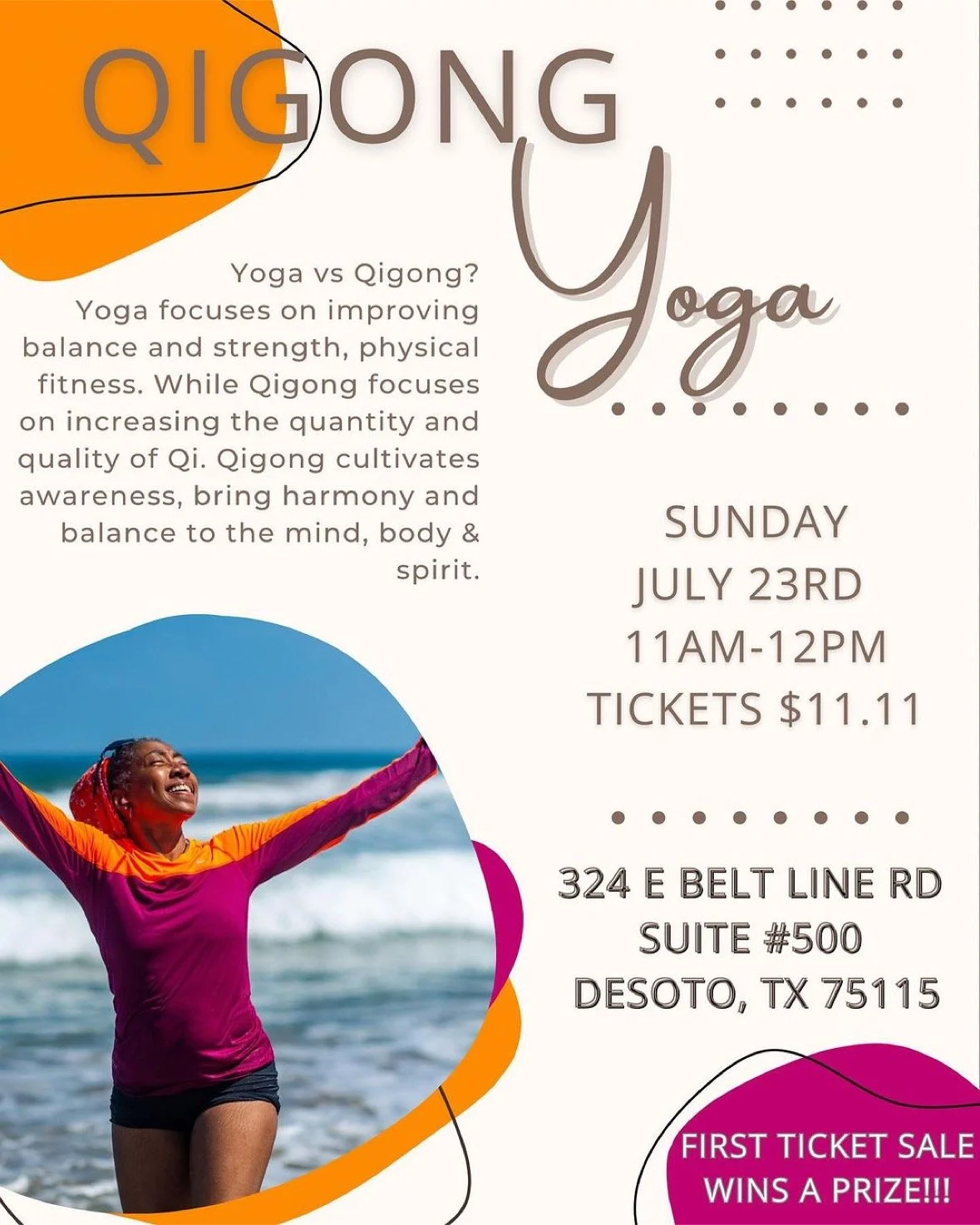 Yoga focus’ on improving balance and strength, physical fitness and Qigong focus’ on increasing the quantity and quality of Qi (Chi) while nourishing and bringing harmony and balance to the mind, body & spirit as well cultivating awareness.