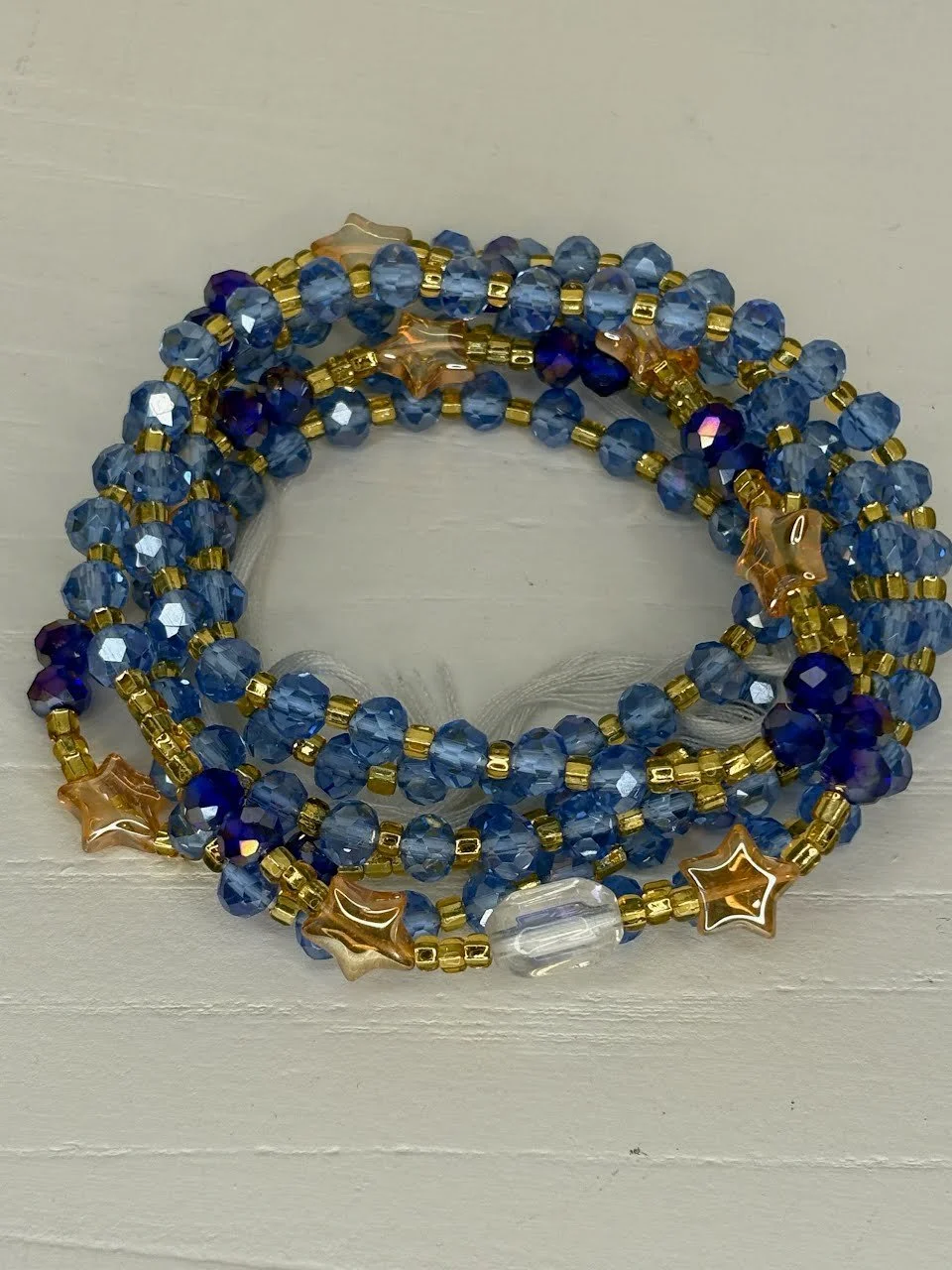 One must tie to their waist size. Use left-over string/beads for anklets.