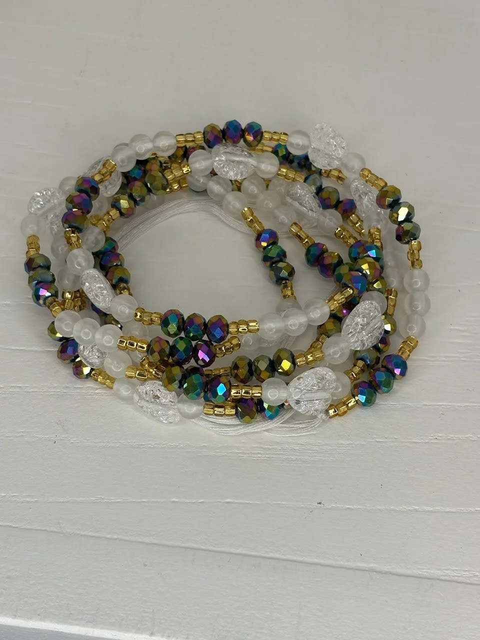 One must tie to their waist size. Use left-over string/beads for anklets.
